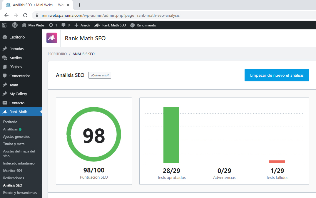 Con nuestras herramientas de optimización logramos optimizar su sitio web con efectividad hasta del 98% (Estos resultados varían)